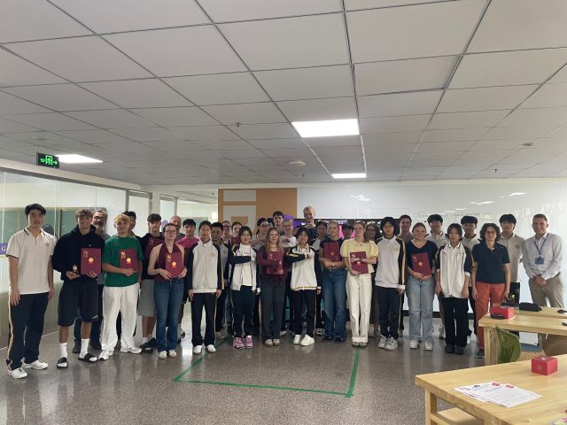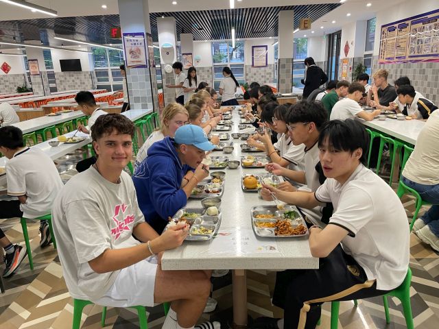 Am Dienstag hatten wir die Gelegenheit, traditionelle chinesische Kleidung, sogenannte Hanfu, anzuprobieren. Ebenfalls durften wir auf traditionelle Weise weißen Tee zubereiten und Anhänger aus Seide basteln, eine Einführung in alte chinesische Handwerkskunst. Außerdem erfuhren wir Spannendes über die Entstehung chinesischer Schriftzeichen. Am Nachmittag fand das große Sport- und Spielfest der Schule statt, das traditionell kurz vor dem Nationalfeiertag und den darauf folgenden Ferien veranstaltet wird. In Teams traten wir bei Spielen wie Sackhüpfen oder „Raupenrennen“ gegeneinander an und hatten viel Spaß. Zum Abschluss präsentierten wir unsere fertigen Projektarbeiten zum Thema Stereotypen, erhielten Zertifikate und kleine Pandafiguren als Erinnerung. Am Abend feierten wir gemeinsam mit den Lehrern der Grand International School beim Abschlussdinner. Lustigerweise trafen sich später fast alle Kleingruppen – ohne vorherige Absprache – bei McDonald’s wieder.