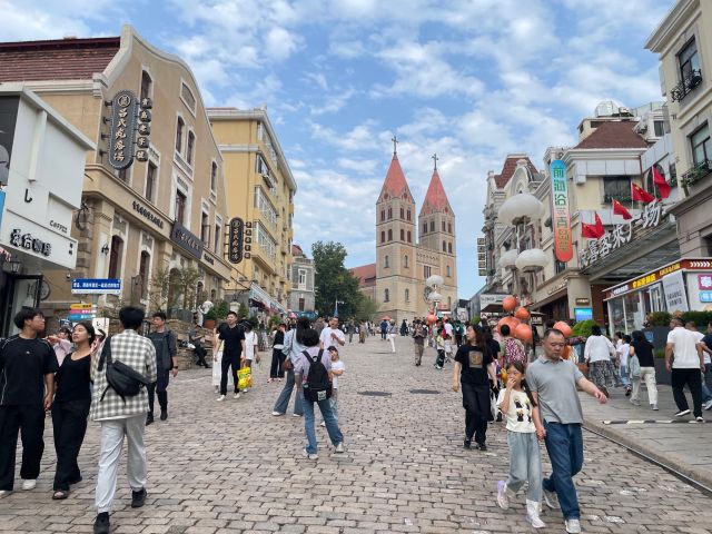 Danach zogen wir ins Hotel um, da das Internat nunmehr geschlossen blieb, und frühstückten dort „deutsch“ mit Toast. Auf dem Programm stand an diesem Tag eine Führung durch das Museum zur Geschichte Qingdaos, bei der wir viel über die Stadtentwicklung und die Kolonialzeit erfuhren. Anschließend erkundeten wir die Altstadt mit ihren Gebäuden aus der deutschen Zeit und besuchten eine evangelische Kirche. Überall war die Stadt festlich geschmückt und in den Straßen herrschte Feiertagsstimmung.