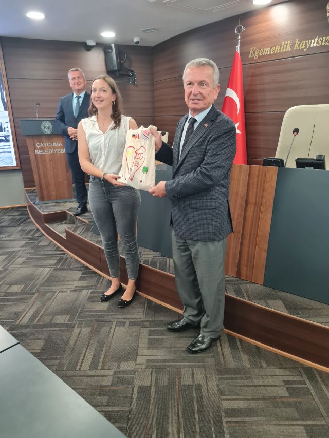 Am darauffolgenden Tag besuchten wir am Vormittag den Bürgermeister. Mit ihm sprachen wir über die Erfahrungen, die wir im Austausch sammeln konnten. Außerdem konnten wir von der Terrasse des Rathauses Çaycuma von oben sehen. Danach sind wir mit den türkischen Austauschschülern in die Stadt Zonguldak gefahren. Dort haben wir uns in einem Einkaufszentrum in deutsch-türkischen Kleingruppen die Läden angesehen und unsere letzte Lira ausgegeben. Gegen 18:30 Uhr sind wir dann wieder mit dem Bus zurück zur Unterkunft gefahren.