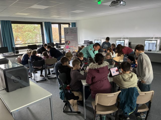 Am 18. November war es endlich soweit: die Digital-AG öffnete zum zweiten Mal ihre Türen für Viertklässlerinnen und Viertklässler, deren Interesse im Rahmen der Medienprojekte an den Grundschulen geweckt wurde. Über 70 Kinder fanden den Weg zu uns ans Gymnasium und verbrachten einen spannenden und vielfältigen Nachmittag. Und dem Feedback nach zu urteilen, hat es nicht nur uns sehr viel Spaß gemacht!