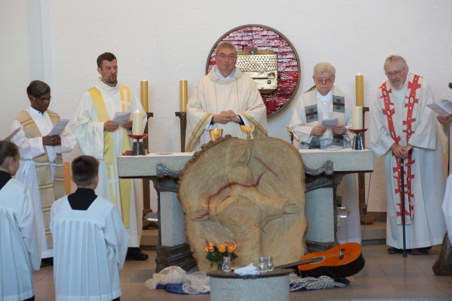 Zu einer fröhlichen Einweihungsfeier des Jugendhofes Pallottihaus waren bei strahlendem Sonnenschein zahlreiche Gäste auf den Klosterberg gekommen. Prälat Thomas Dornseifer aus Paderborn war Hauptzelebrant des festlichen Gottesdienstes, in dem Dechant Andreas Neuser und der Vizeprovinzial Pater Michael Pfenning sowie viele weitere Pallottiner-Patres und auch Pater Heinrich Büdenbender als Vertreter der Missionare der Heiligen Familie konzelebrierten. Für die Musik sorgten die Schüler Dustin Modic, Jan Schrüllkamp, David Oberste-Dommes, Benedikt Wüllner und Leah Hufnagel und auch die Messdiener waren Schülerinnen und Schüler unseres Gymnasiums.
